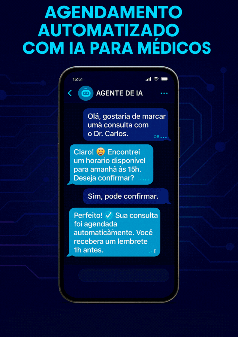 Assistentes para clínicas, academias, salões, hotéis, agencias de viagem, oficinas, restaurantes etc. Marcação automática de consultas, serviços e reservas. Envio de lembretes e confirmação de presença. Integração com calendários e sistemas de gestão.